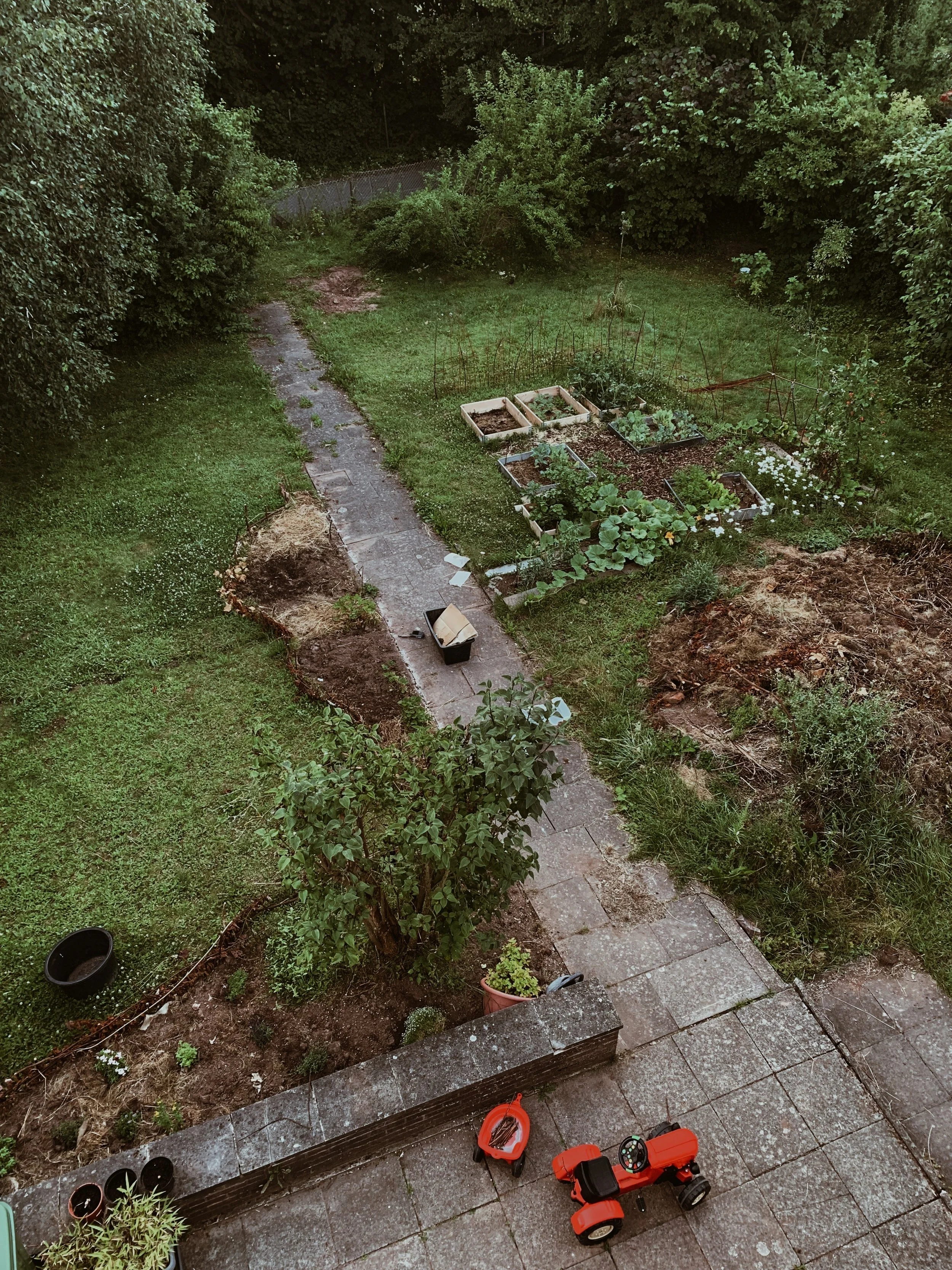 Wir hatten das Haus gerade frisch gekauft, die Schlüssel erhalten und den mannshohen Rasen zum ersten Mal gemäht, da kam dieser Beschwerdebrief der Nachbarn wegen der gigantischen, frei wuchernden Hecke. Wir saßen im Garten und betrachteten die gewaltigen Sträucher. Es stimmte natürlich, die musste gestutzt werden. Wir hatten noch nie eine Hecke. Unser Eigentum hat sich in den letzten Wochen deutlich vergrößert. Bis dato hatten wir weder Immobilien noch ein Auto. Wir mieteten eine Wohnung und hatten ein Fahrrad und eine Jahreskarte für die Bahn, ein paar Möbel, ein paar Kleidungsstücke und jeder ein Notebook und Mobiltelefon, wie die meisten Leute. Nun hatten wir ein Haus. Einen Garten - Eine Hecke. Vielleicht wäre ein Gärtner gut gewesen, doch ein Gärtner kostet Geld und gerade das war nach dem Kauf dieser ganzen Dinge nicht mehr vorrätig. Wir versuchten es selbst. Mit zwei großen Heckenscheren machten wir uns an die Arbeit und dämmten die ausufernden Pflanzen ein. Von oben kamen wir nicht dran. Die Hecke blieb also hoch, aber wurde deutlich schmaler. Es waren Unmengen an Heckenschnitt, die sich nun in unserem Garten türmten. Sie bildeten einen großen Hügel. Das sah zwar etwas ruppig und wild aus, doch prinzipiell gefiel uns der Hügel.
